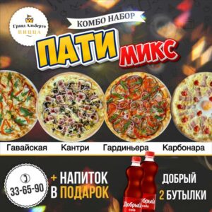 Соус томатный, сыр моцарелла, сыр гауда, сыр пармезан, сыр чеддер, помидоры черри, руккола, майоран. Вес: 510 г